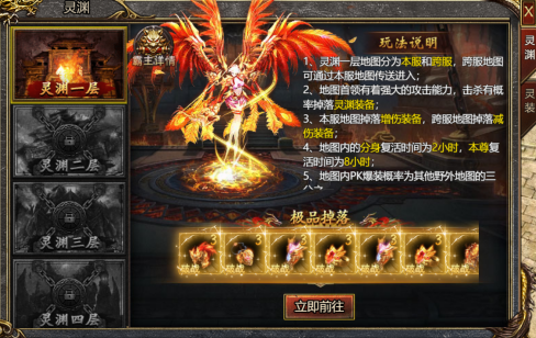 B.灵渊一层地图分为本服和跨服,跨服地图可以通过本服地图传送进入