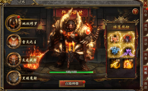 C.试炼副本中的神兽十分强大,记得带上行会中的小伙伴一起参与,击杀行会神兽后每位参与活动的行会成员都可以获得奖励