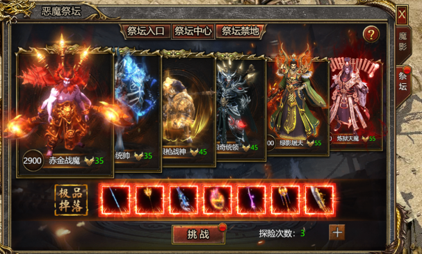 B. 恶魔祭坛分为多层,分别达到20转、30转、34转可进入祭坛入口、祭坛中心、祭坛禁地,层数越高,获得的道具越珍贵