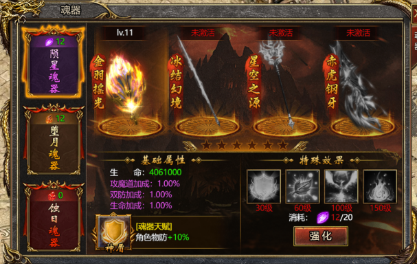 C. 魂器装备升级到一定等级后,可激活自己独有的特殊效果